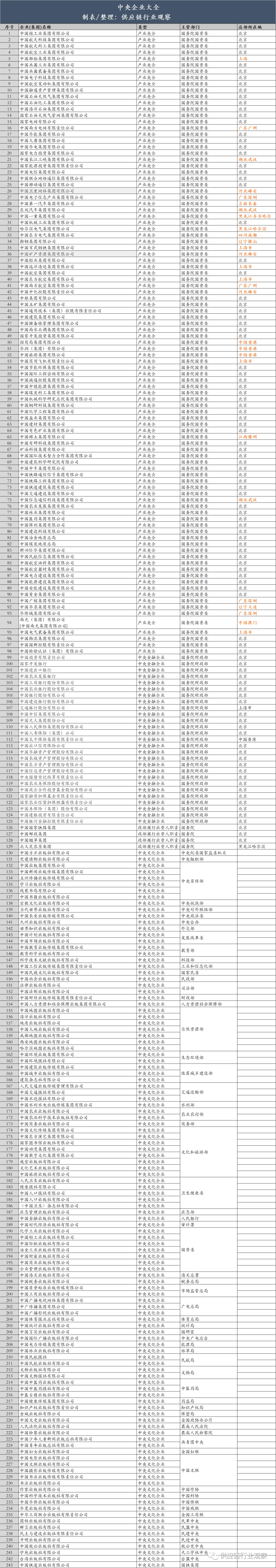 我国目前各类央企共243家。